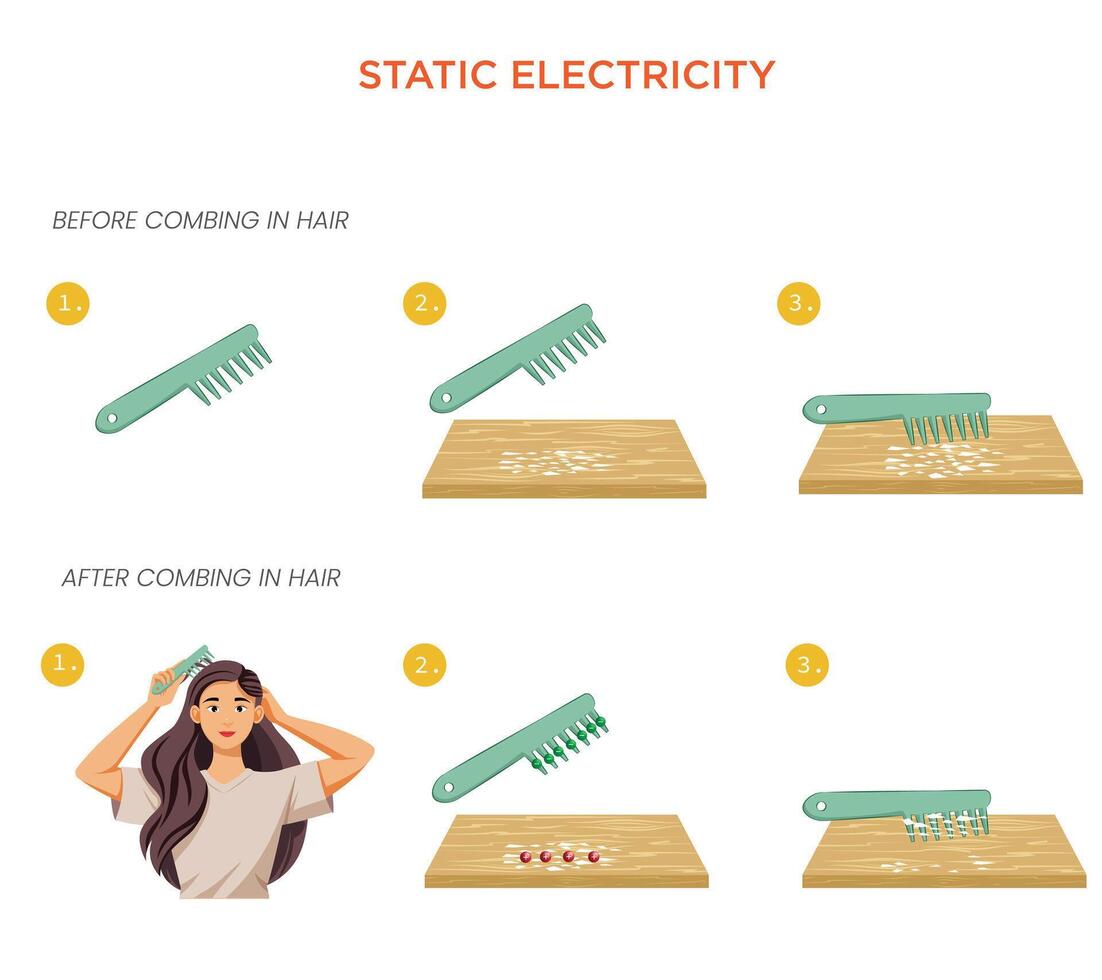Static Electricity with a Comb Generating Charge to Attract Smalll Paper Pieces Pro Vector