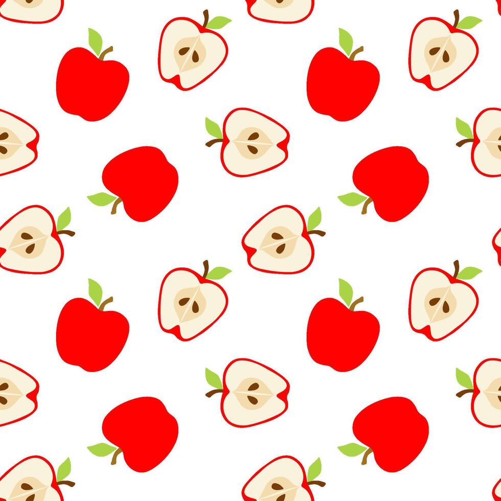 Fruit red apple with seeds seamless pattern in simple flat style on white background Pro Vector