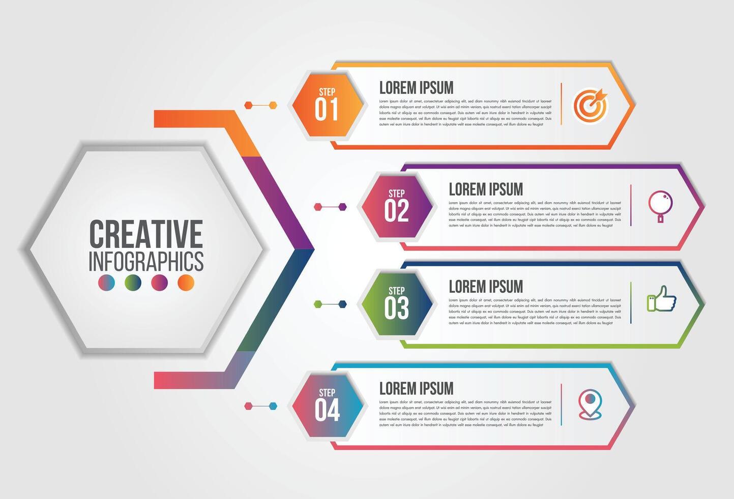 Business infographics element.Hexagon chart template Chart with 4 steps or options for presentations Free Vector