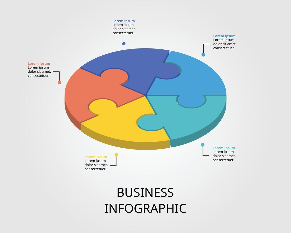 Jigsaw template with number for infographic for presentation for 5 element Pro Vector