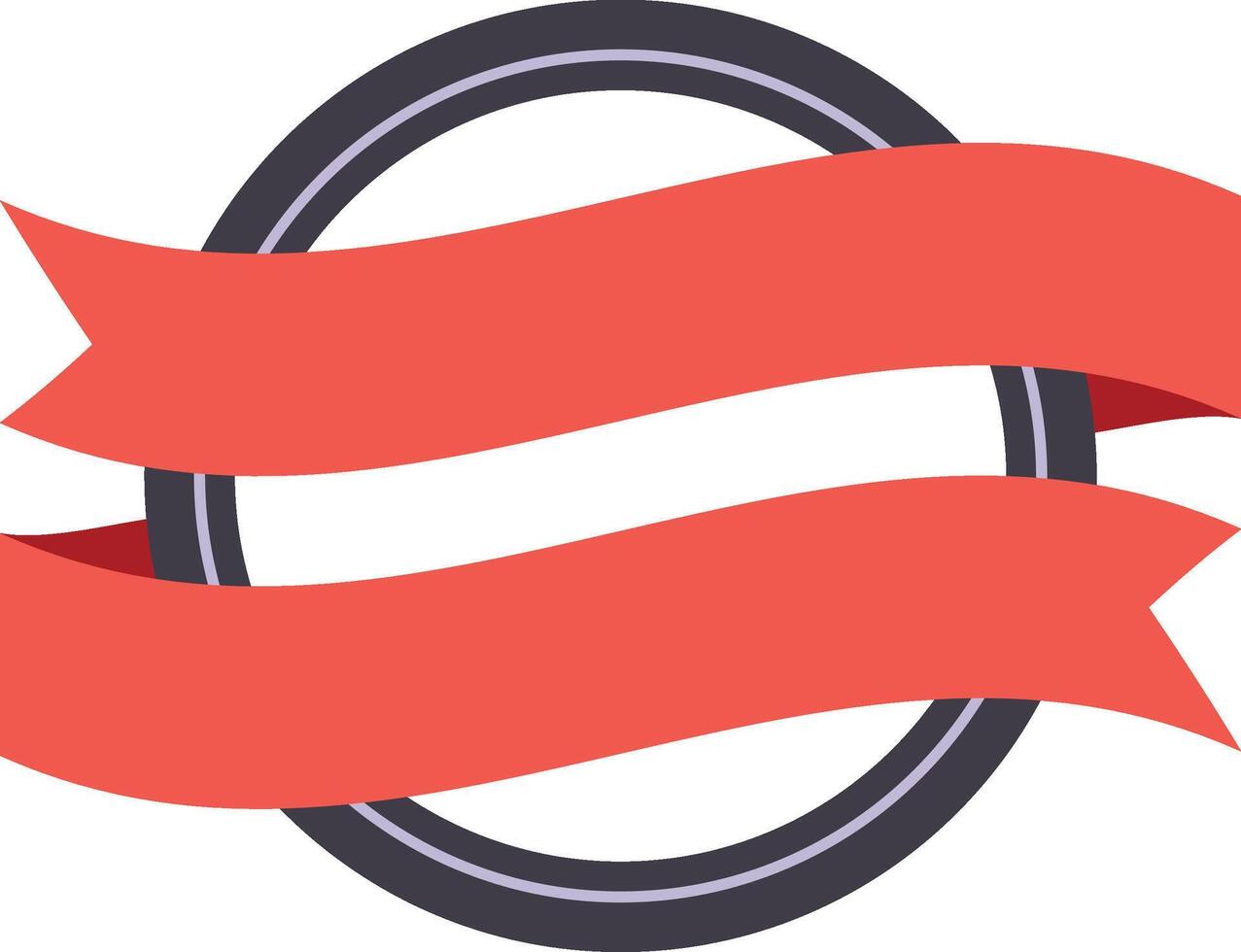 Two elegant waving red ribbons are wrapping a circular frame with a thin gray border and blank white background, creating a perfect space for custom labels or logo designs Pro Vector