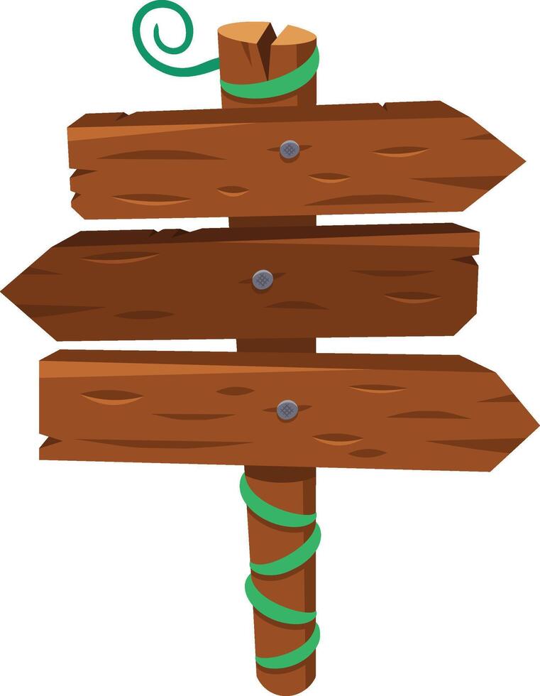 Wooden signpost with three arrows pointing in different directions, tied with a green rope, providing guidance and direction Pro Vector
