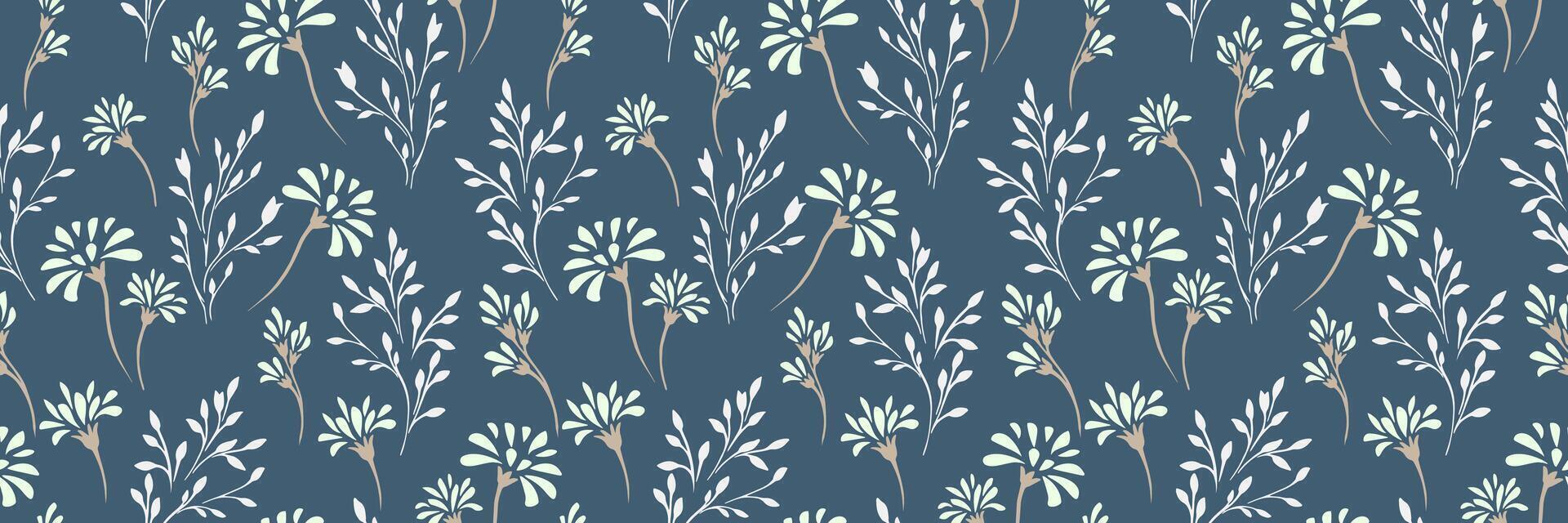 Plain pattern with abstract tiny floral stems and small branches on turquoise background. hand drawing unique flowers. Simple ornament for designs, textile, cover, fabric, wallpaper Pro Vector