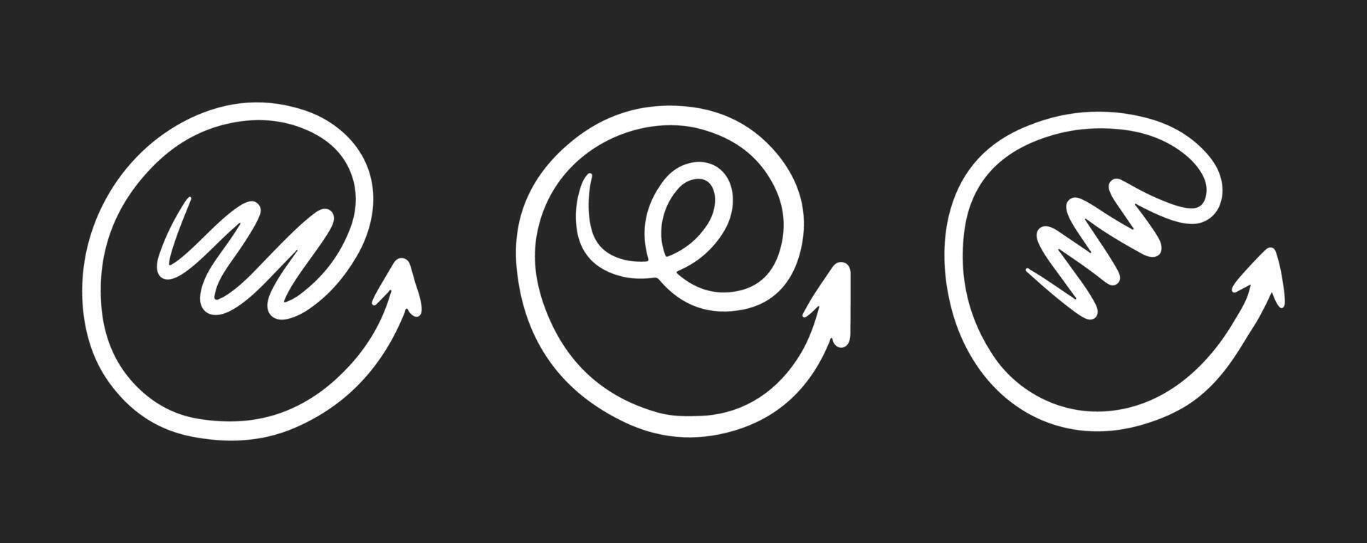 Hand drawn round arrows set. Scribble circle lines, swirls arrows, scrawls. Doodle drawing. Direction pointers Pro Vector