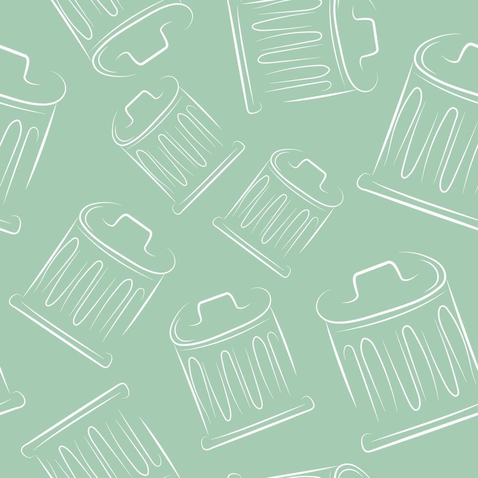 seamless pattern with large round garbage cans in the style of line art on a green background arranged chaotically, to fight against environmental pollution day Pro Vector
