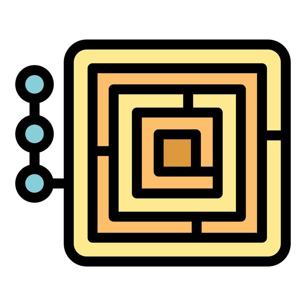 Square labyrinth puzzle with entry points and central goal, problem solving and strategy concept Pro Vector
