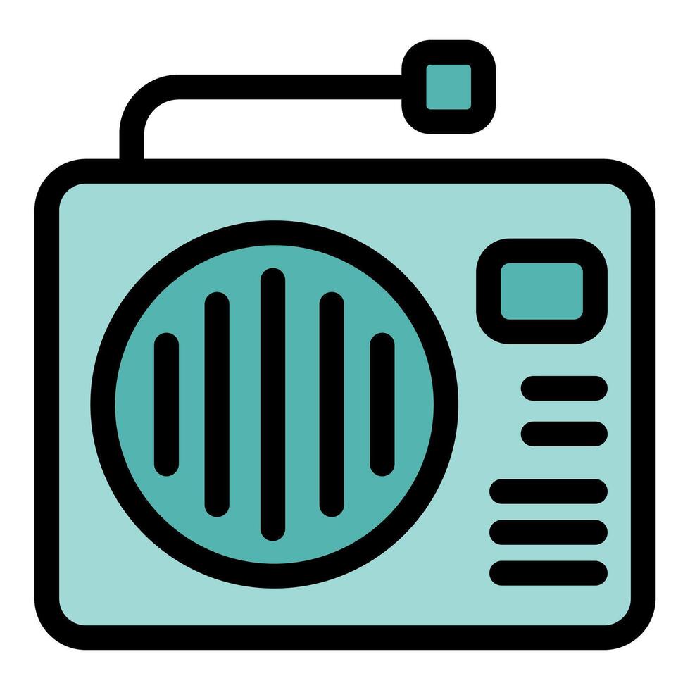 Retro radio broadcasting music with antenna and tuning buttons Pro Vector