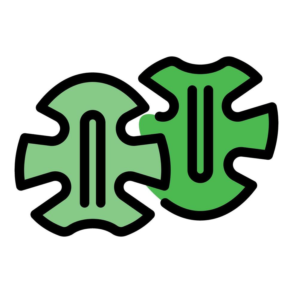 Two green puzzle pieces connecting, completing a task or solving a problem Pro Vector