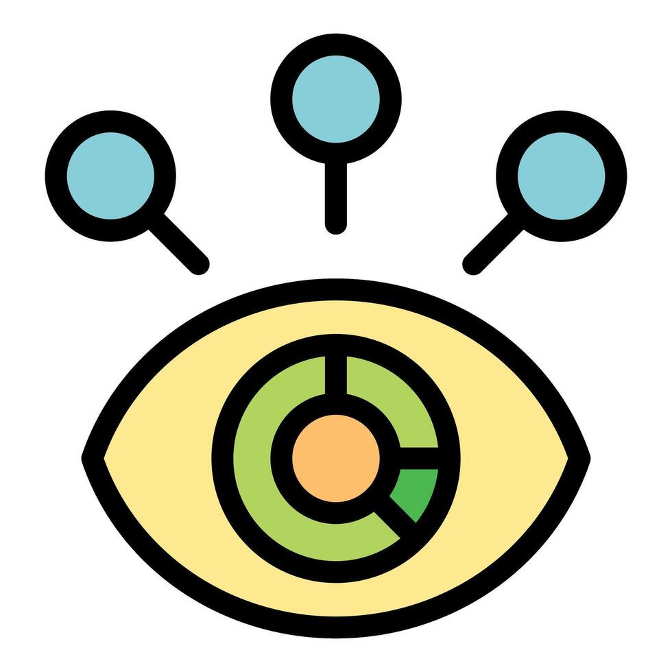 Eye analyzing data with magnifying glasses, visualizing information and insights Pro Vector