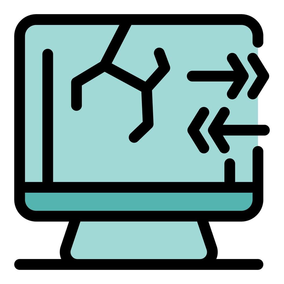 Broken computer screen showing transferring data with arrows Pro Vector