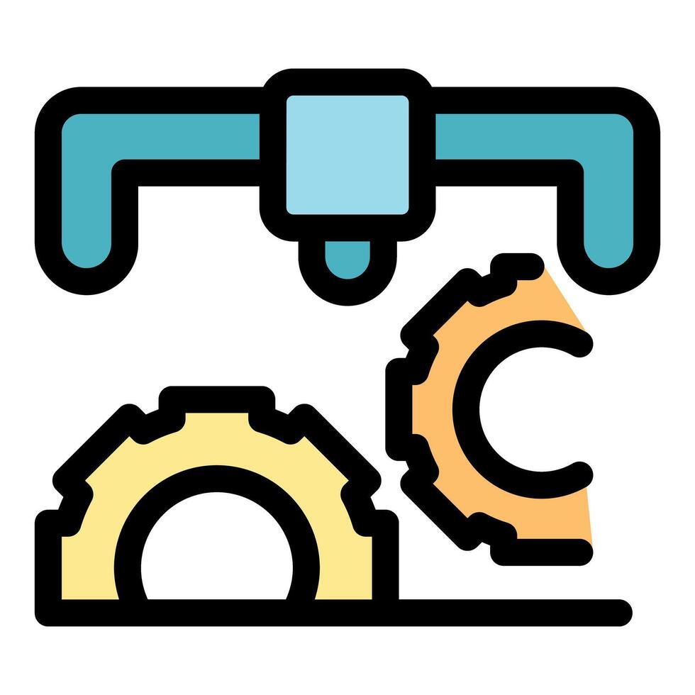Robotic arm creating gears in automated manufacturing process Pro Vector