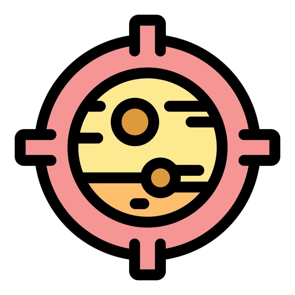 Spaceship is targeting planet with laser sight, science fiction imagery Pro Vector