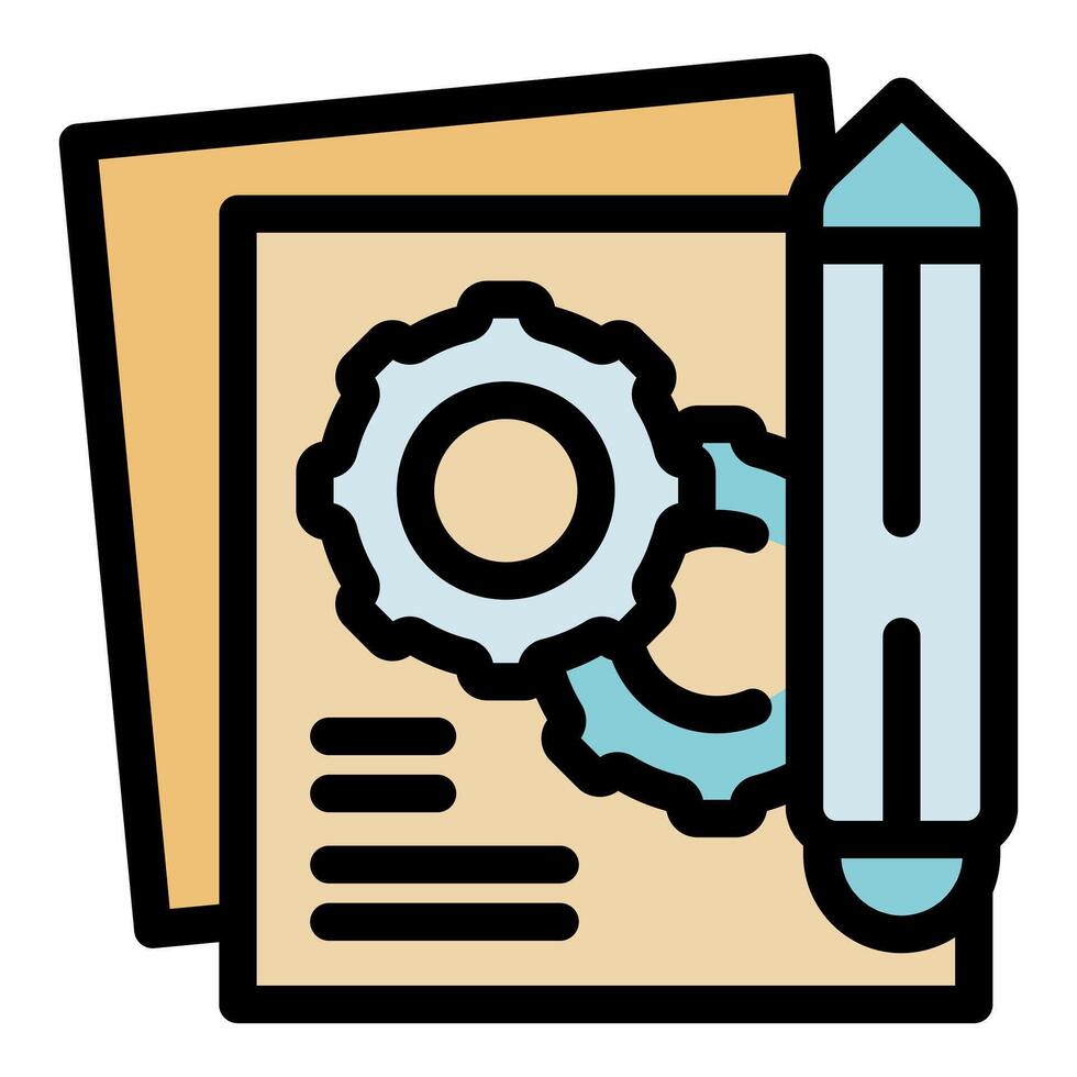 Project development process with pencil and gears representing planning and execution Pro Vector