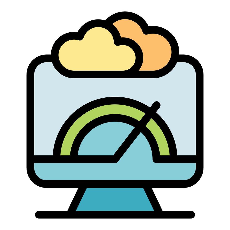 Cloud speedometer showing internet speed test on computer screen Pro Vector