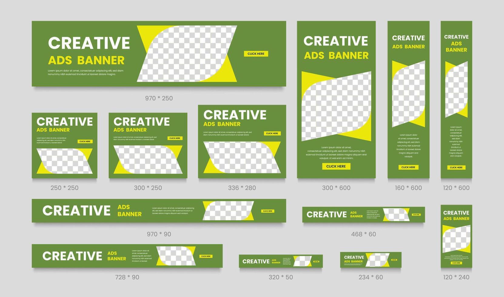 Creative business green banner design web template Set, Horizontal header web banner. ad banner collection Pro Vector