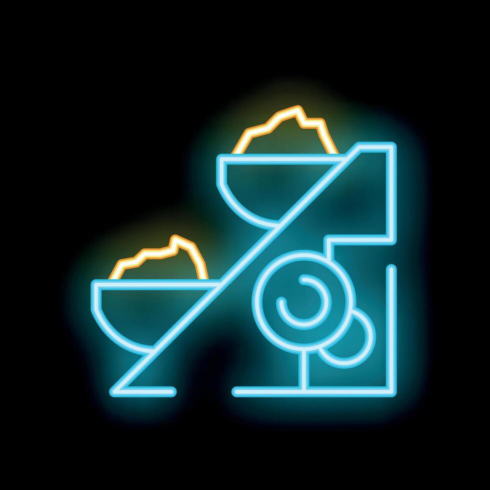 Neon icon of a mechanical scale comparing objects with different weights Pro Vector
