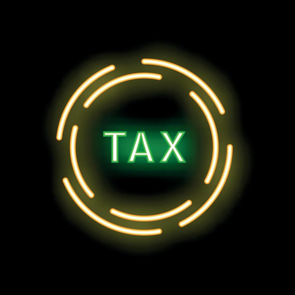 Glowing neon sign showing the word tax in green with a circular pattern around it Pro Vector