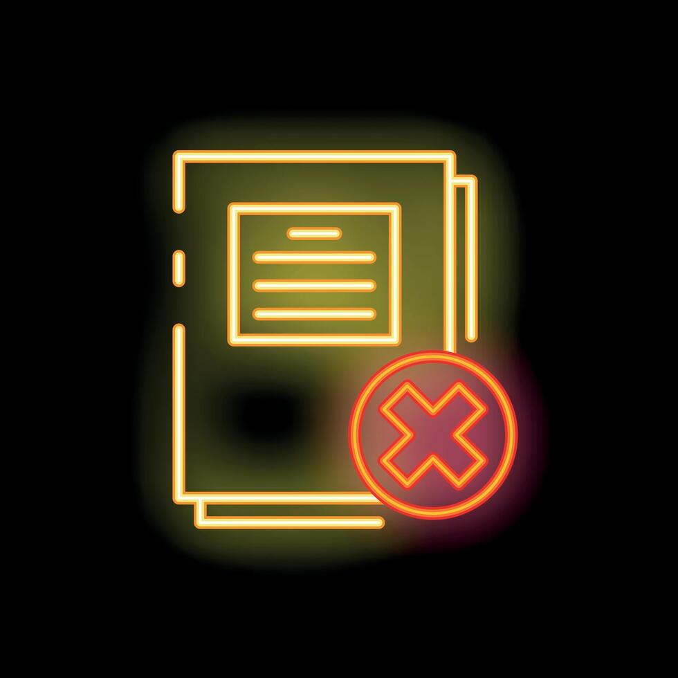 Neon icon of documents with red cross mark showing unsuccessful contract Pro Vector