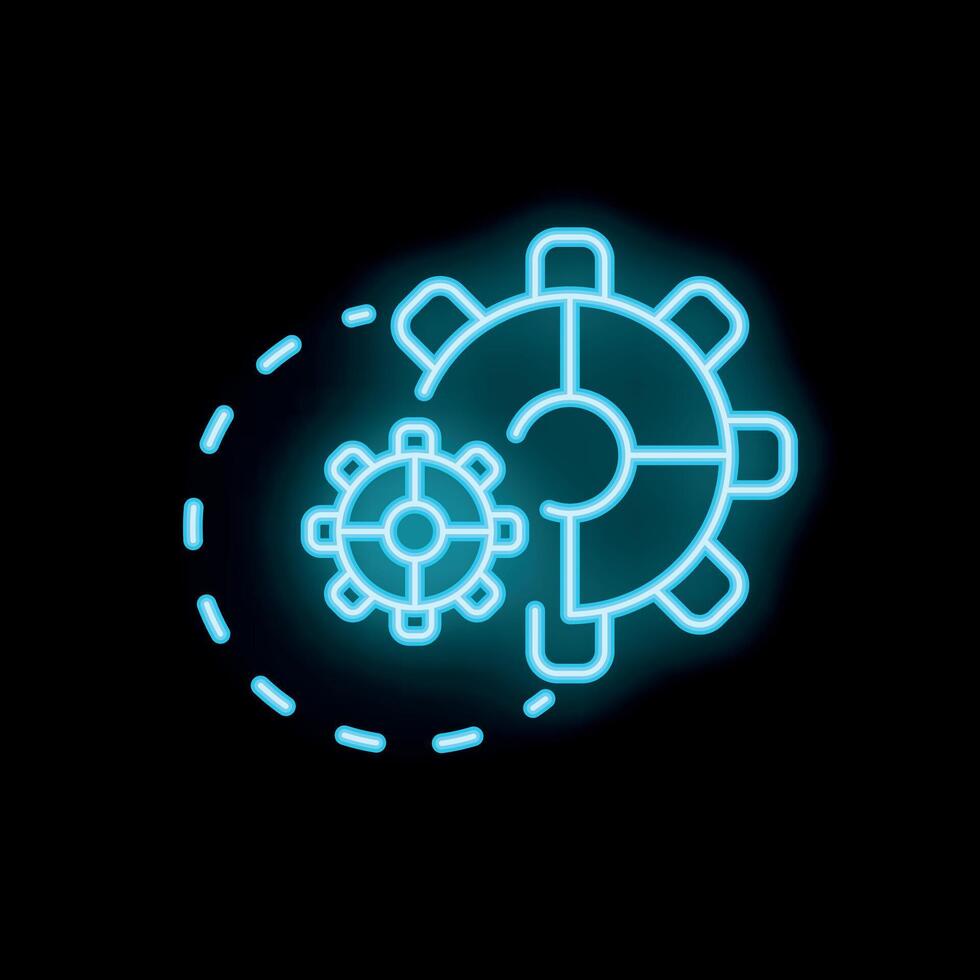 Neon icon of gears rotating in a continuous cycle representing automation Pro Vector