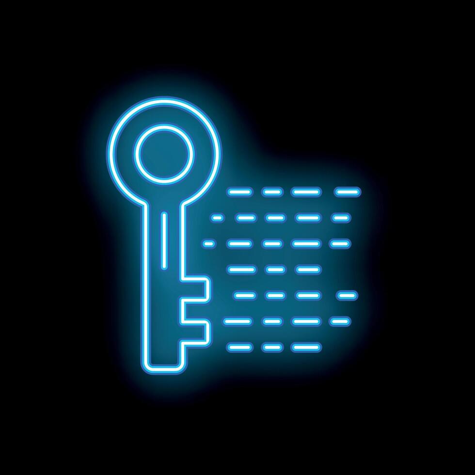 Neon blue key transforming into digital binary code on black background Pro Vector