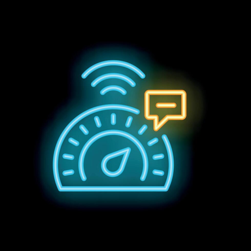 Neon sign representing wifi speed test with signal strength and chat bubble Pro Vector