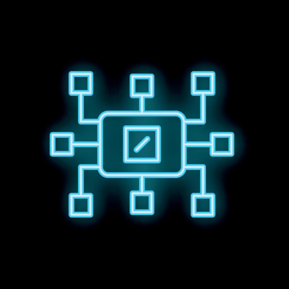 Neon blue processor icon depicting machine learning algorithm Pro Vector