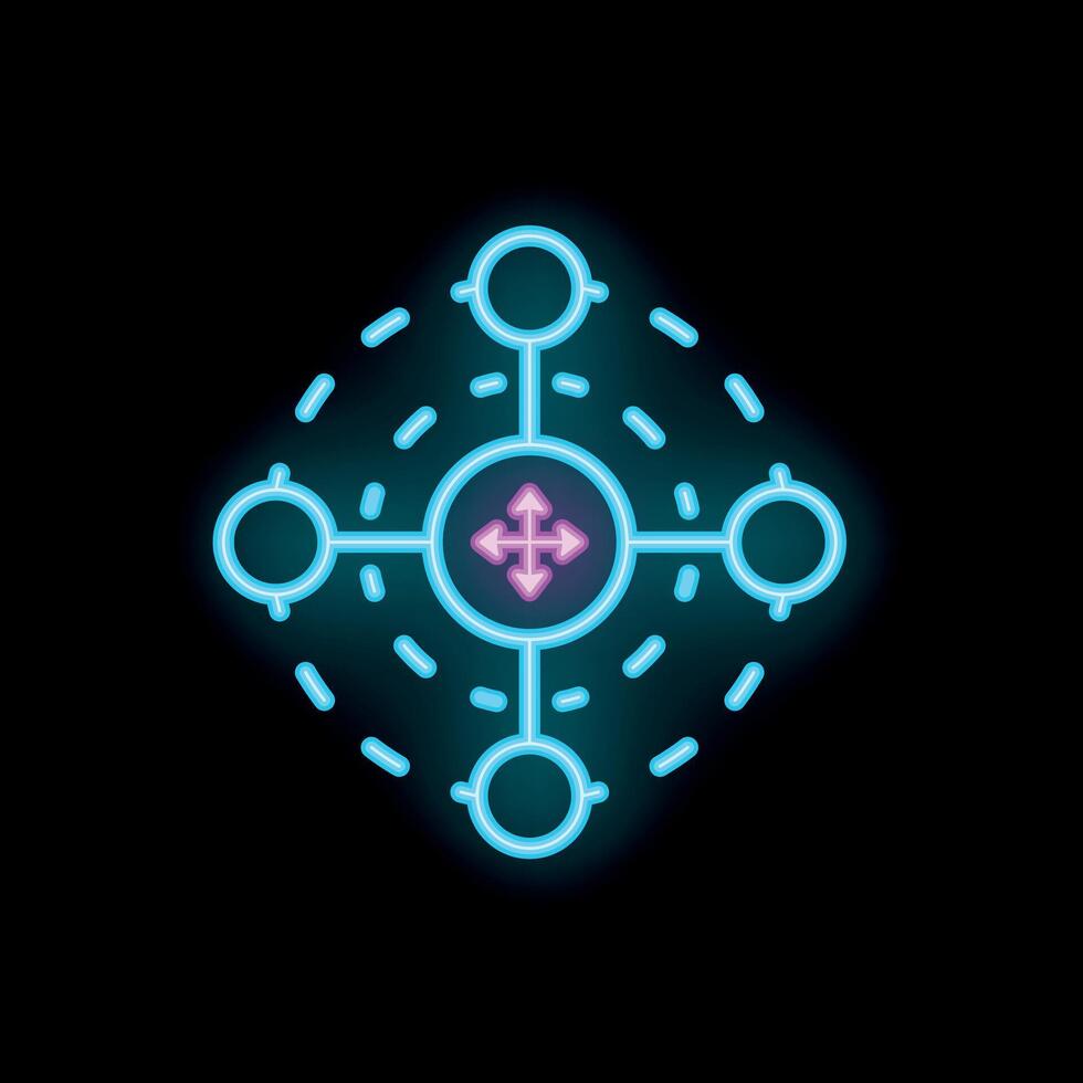 Neon style icon showing four arrows pointing to center representing convergence Pro Vector