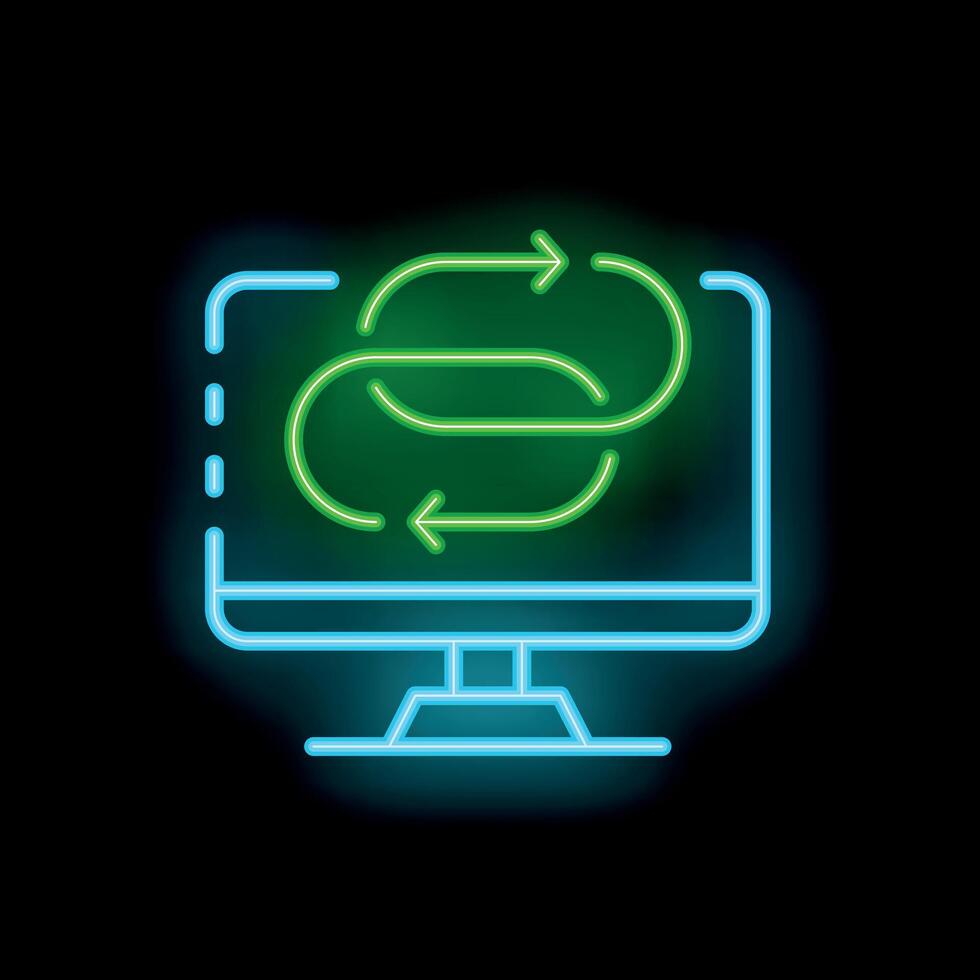 Neon computer screen showing rotating arrows symbolizing update process Pro Vector
