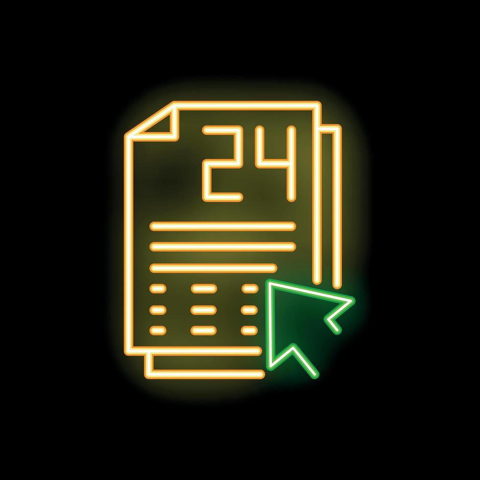Neon cursor clicking on a 24 hours open document icon Pro Vector
