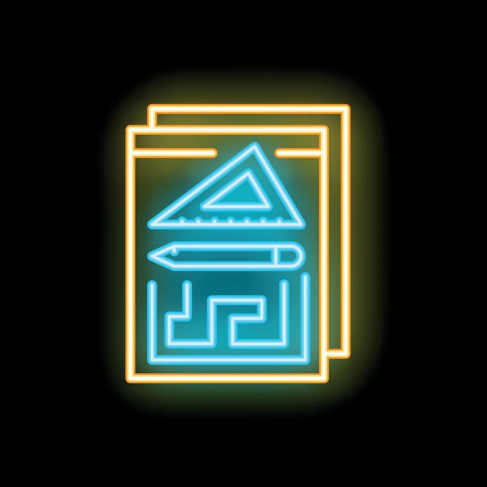 Neon icon of architectural project with ruler, pencil and triangle representing engineering Pro Vector