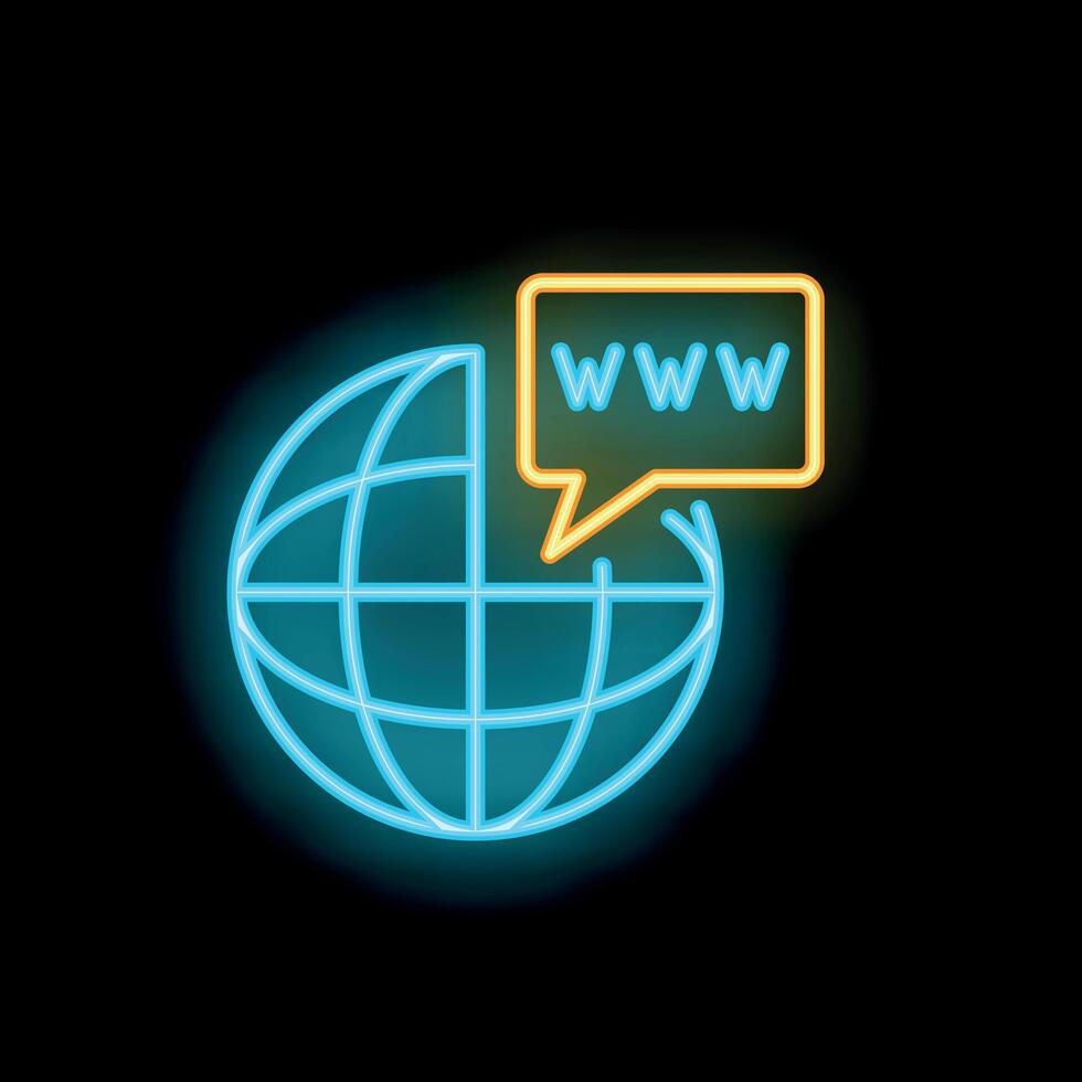 Neon icon of www speech bubble connecting to earth globe for global website and internet concepts Pro Vector