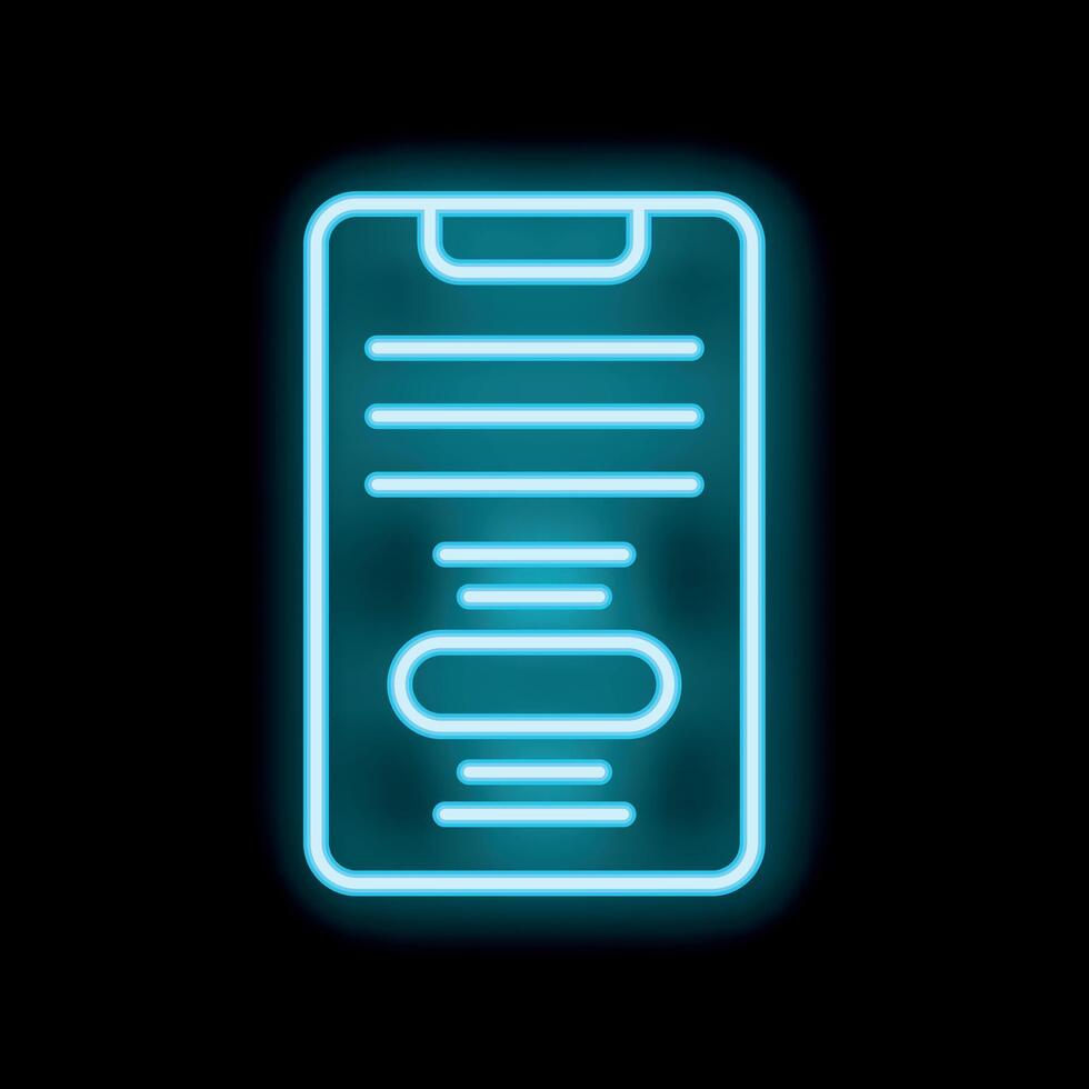 Neon icon of smartphone displaying mobile app interface with editable text fields Pro Vector