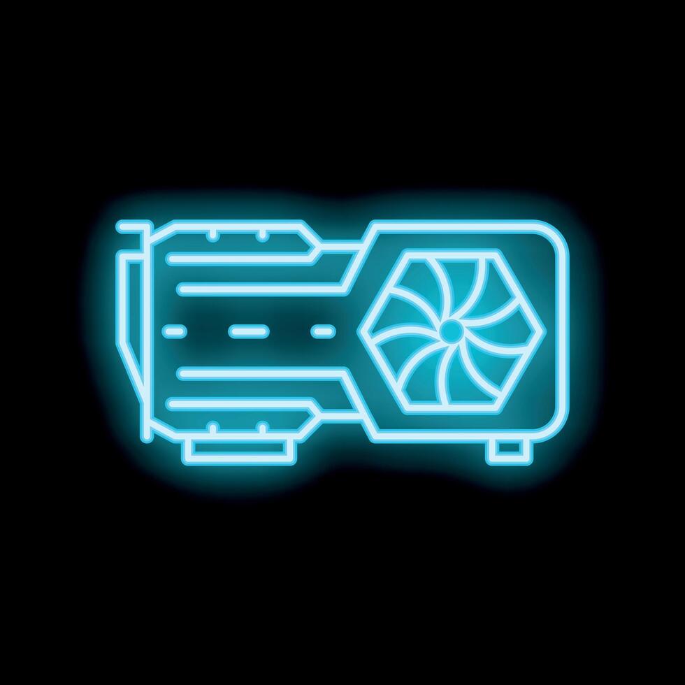Neon icon of computer graphics card showing gpu chipset and cooling fan Pro Vector