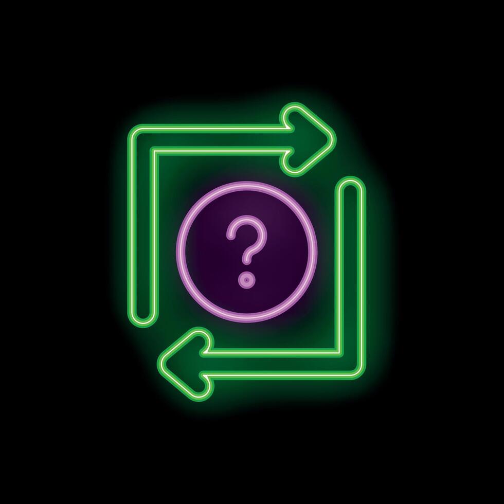 Neon question mark symbol repeating inside arrows cycle Pro Vector