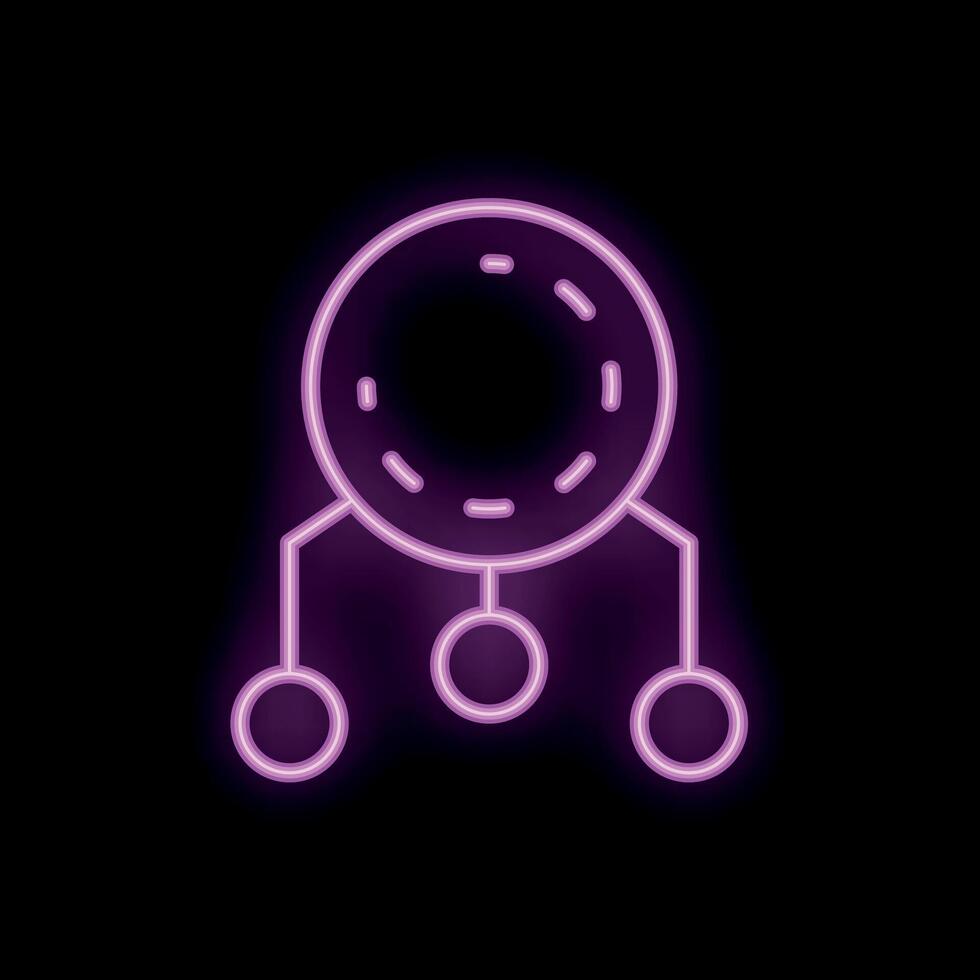 Neon style icon representing distributed computer network on black background Pro Vector