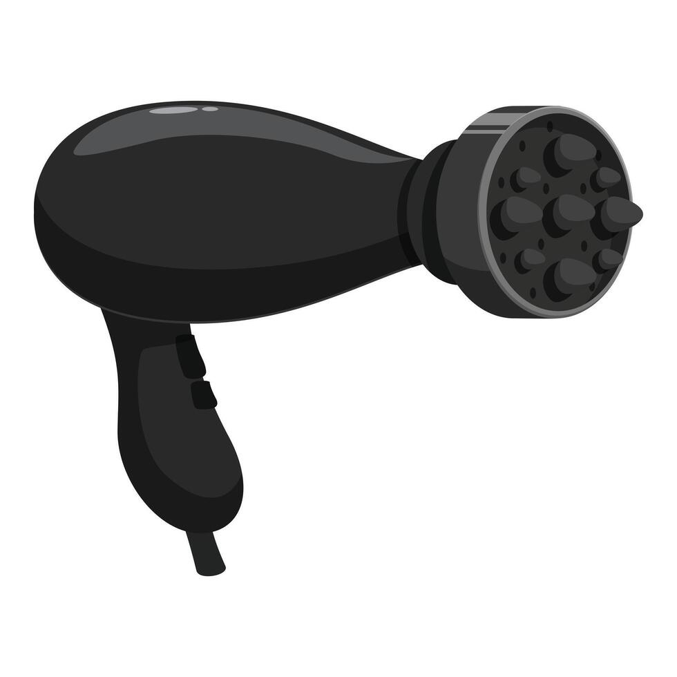 Black hair dryer with diffuser creating volume and defined curls Pro Vector
