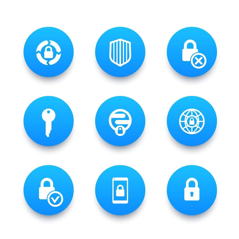 Security icons set, secure transaction, key, lock, shield, online safety Pro Vector