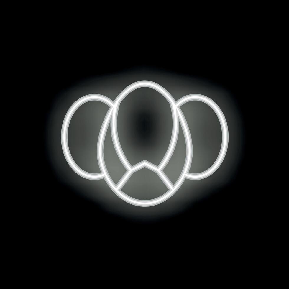 White neon sign glowing in the dark representing three interconnected circles forming a triangle shape Pro Vector