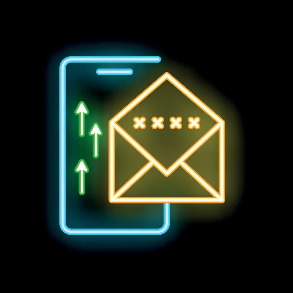 Neon icons of smartphone sending encrypted email message Pro Vector