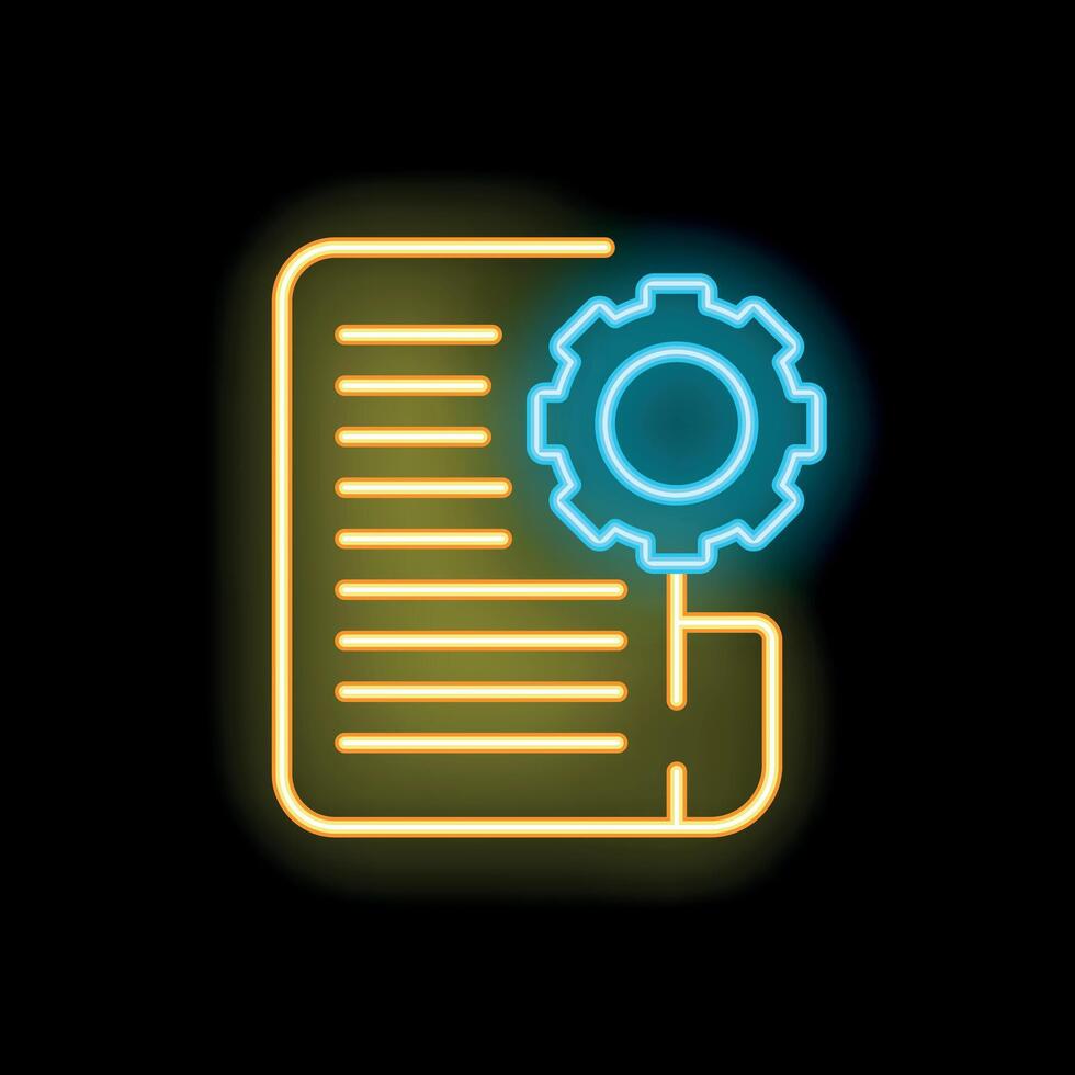 Neon icon of document with cogwheel representing automated workflow Pro Vector
