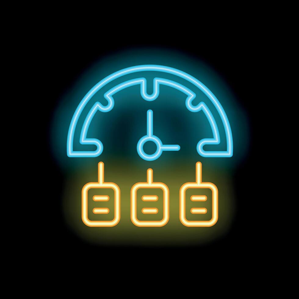 Neon speedometer showing servers connected to a network over time Pro Vector