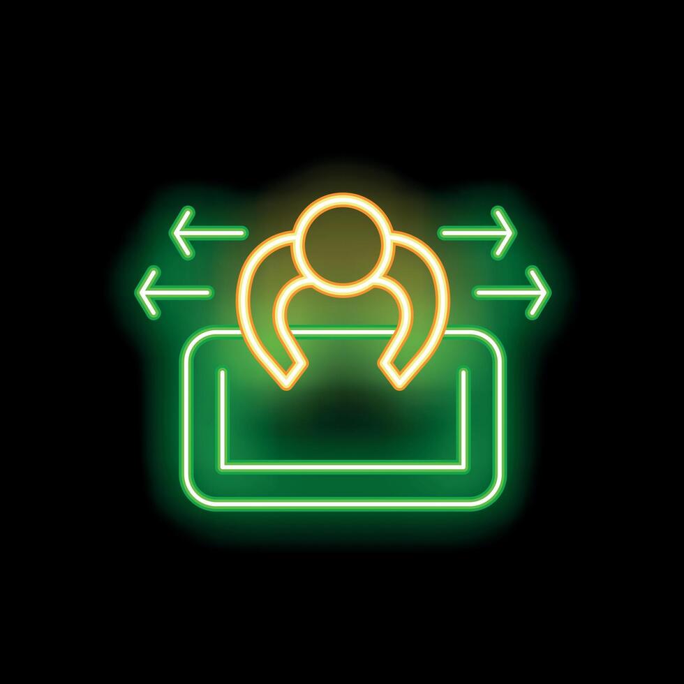 Neon green icon of person using tablet for multitasking and communication Pro Vector