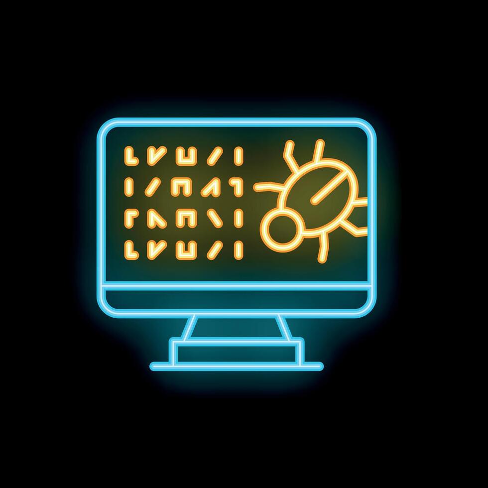 Neon icon of computer virus showing malware threatening system Pro Vector