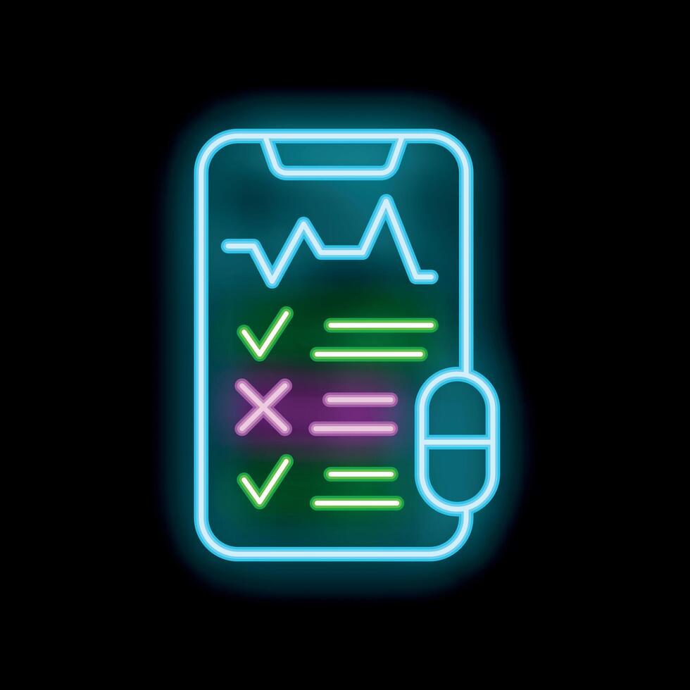 Neon smartphone displaying online survey with mouse cursor navigating through options Pro Vector