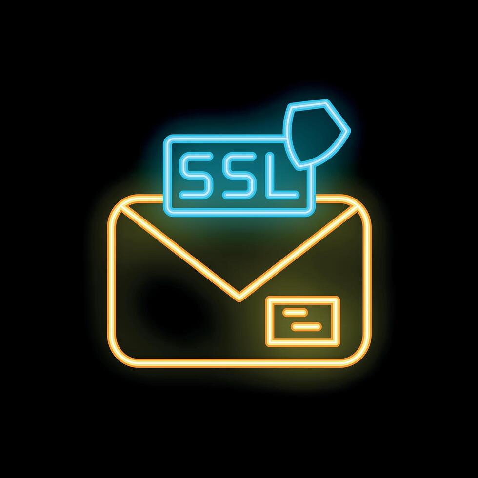 Neon ssl certificate icon ensuring secure email communication Pro Vector