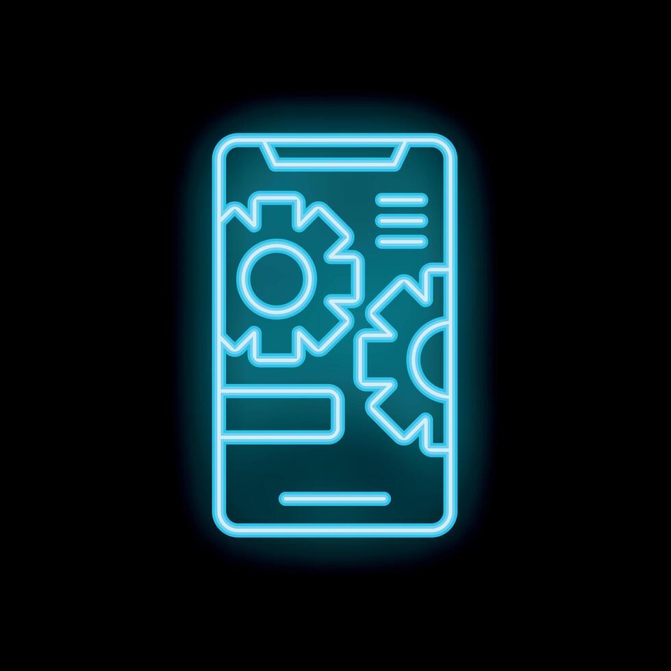 Neon icon of mobile app development showing smartphone with gears Pro Vector