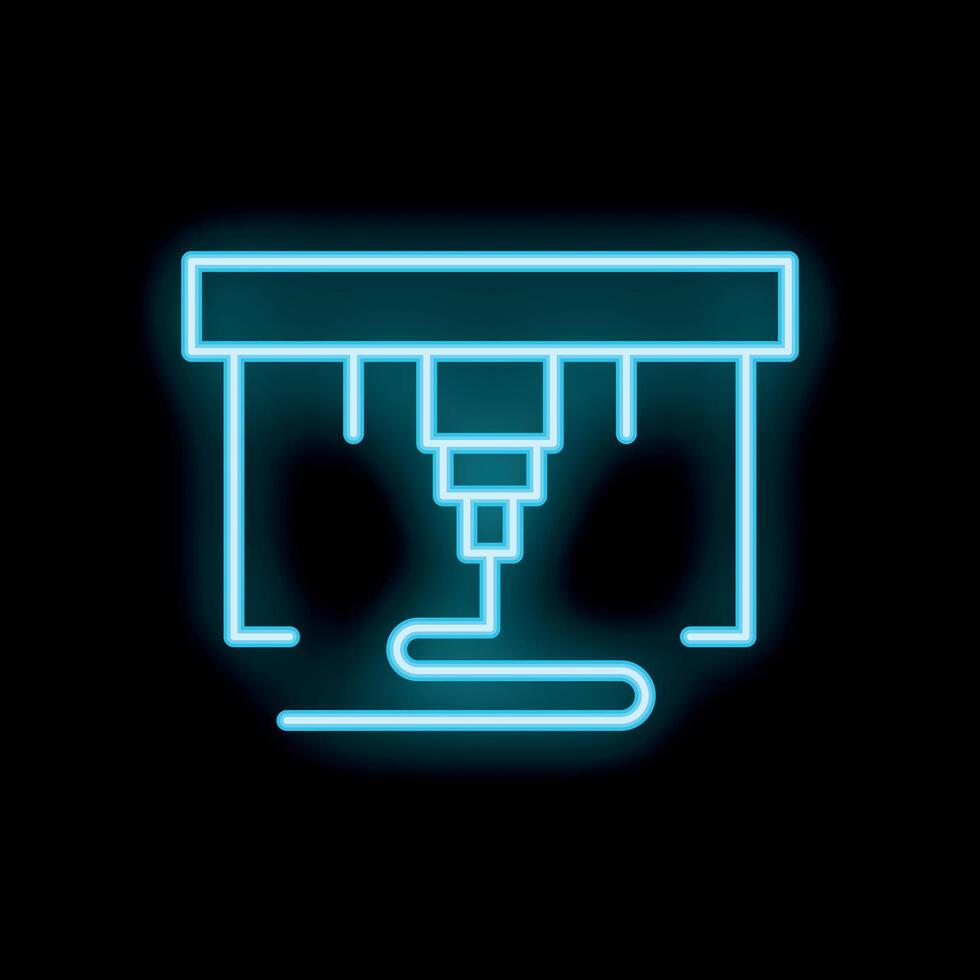 Neon icon of 3d printer printing object layer by layer Pro Vector
