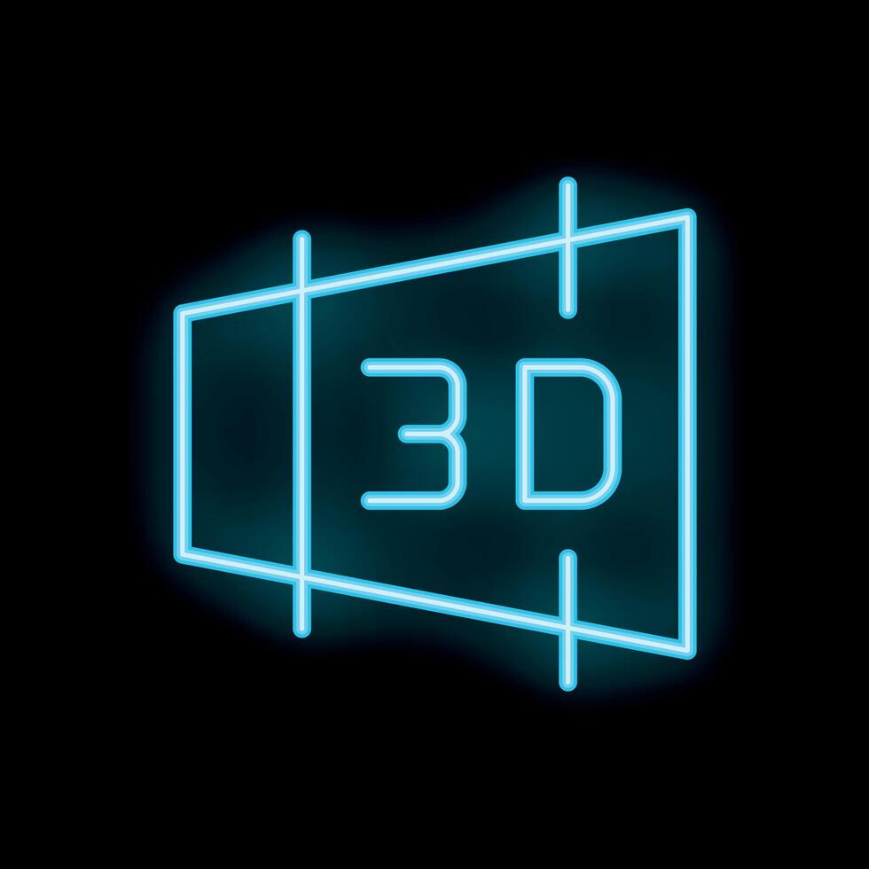 Neon 3d modeling software interface icon glowing on black background Pro Vector