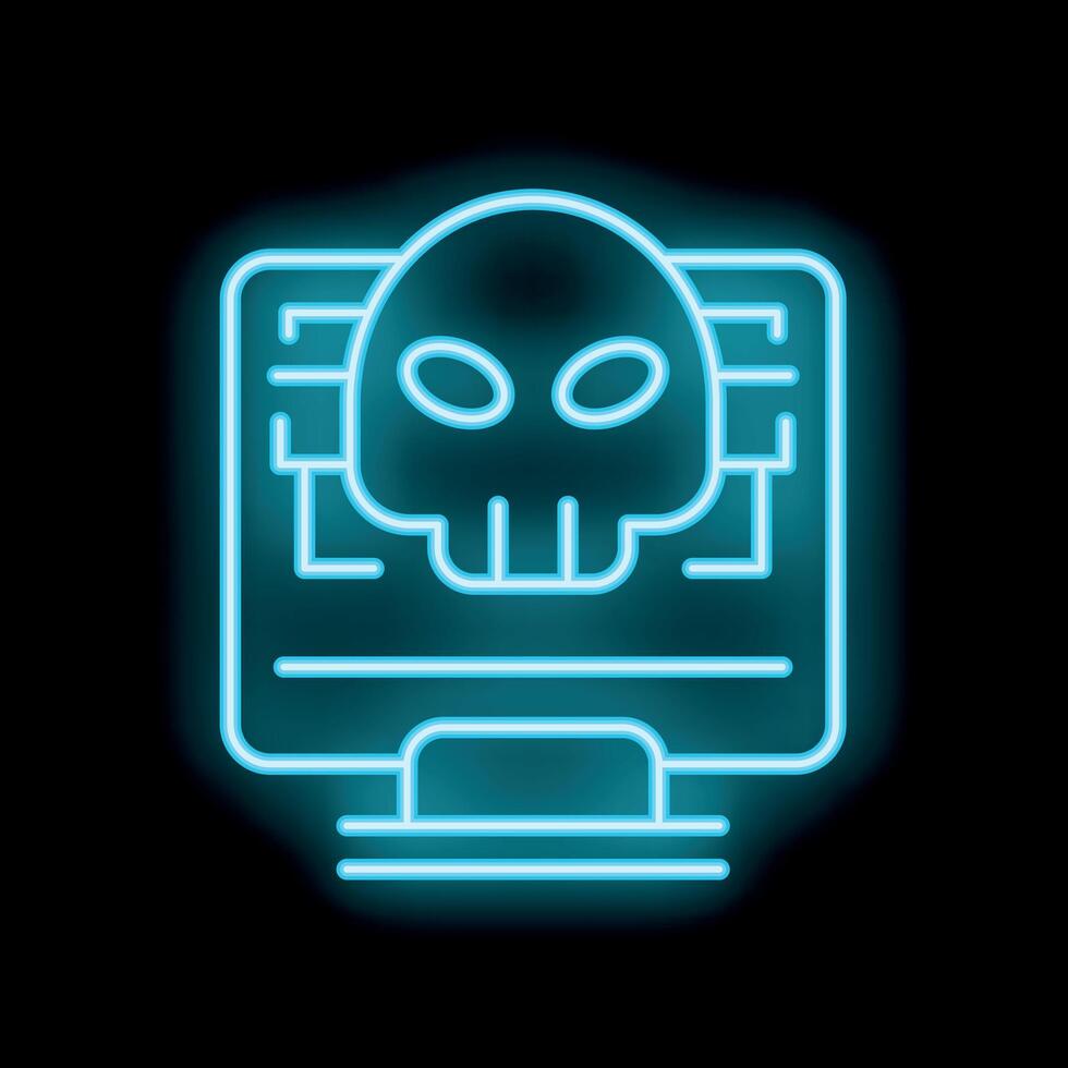 Neon blue skull displaying on computer screen symbolizing cyber threat Pro Vector