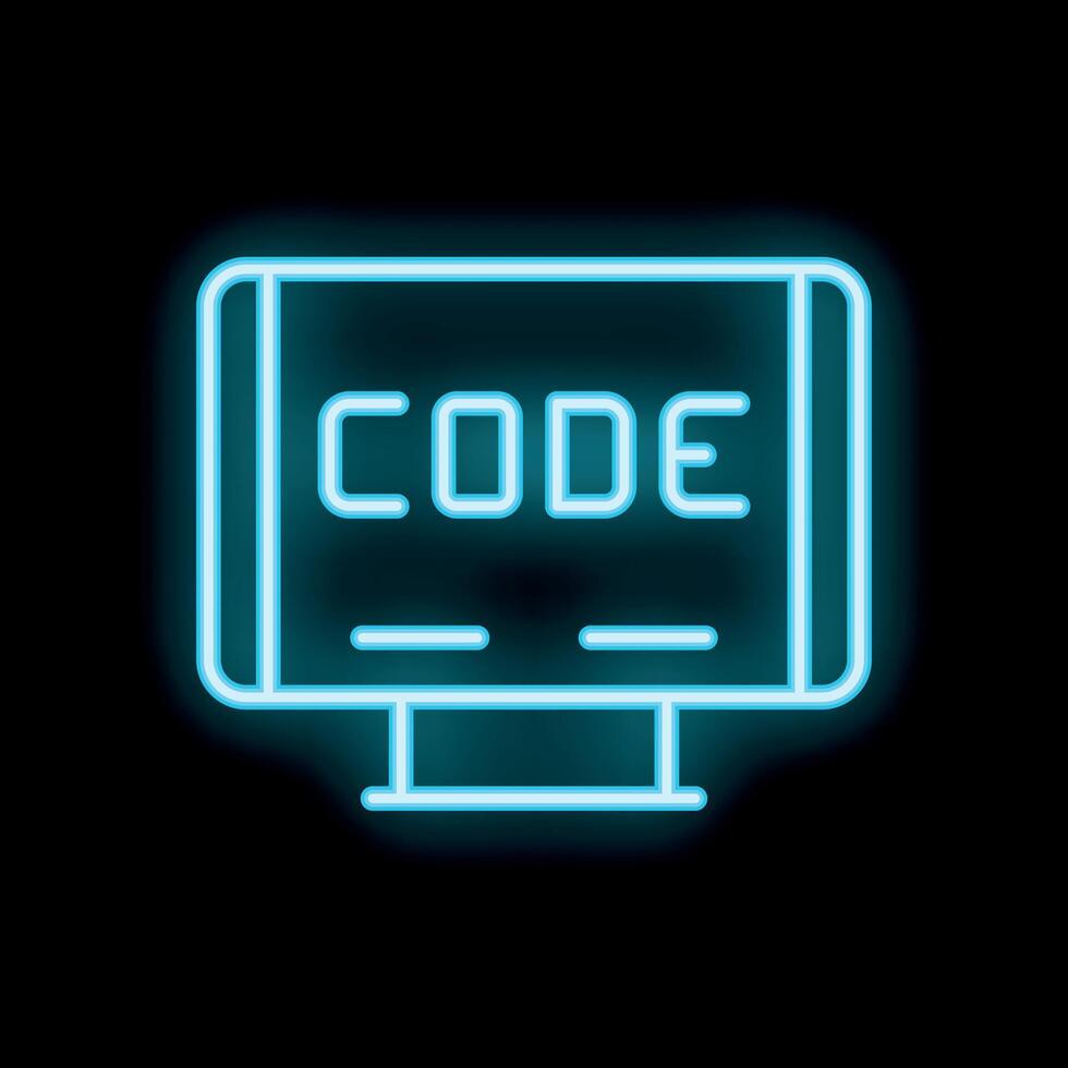 Neon sign showing the word code displayed on a computer screen Pro Vector